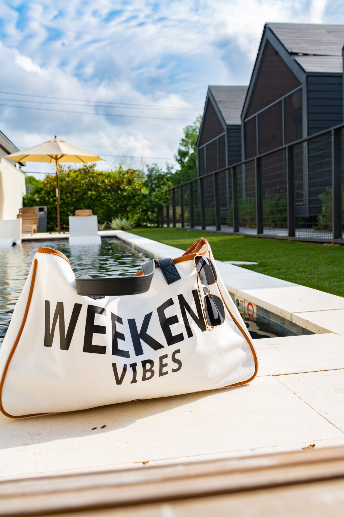 It’s your time to snag this weekend vibes getaway tote bag and fill it with your weekend goodies, your pool day essentials, or treat it as your overnight bag. Say no more!