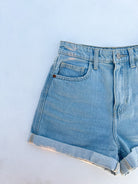 Introducing your next denim summer staple featuring a high rise fit, double rolled hem, and mom shorts style