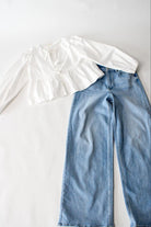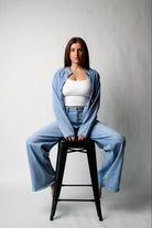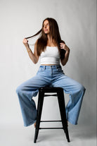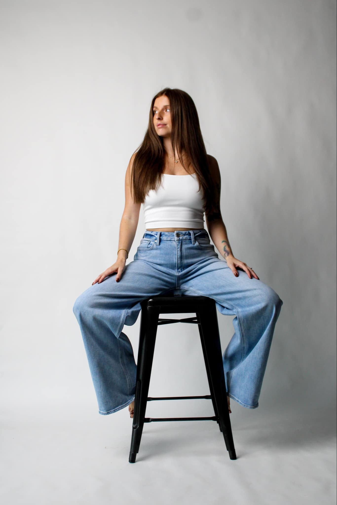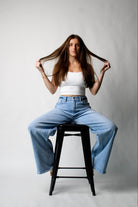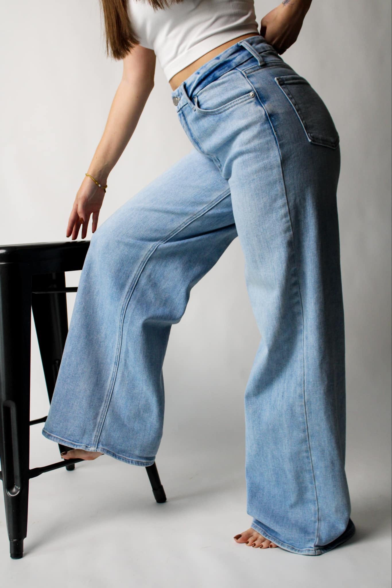 Introducing the "Showoff HR Palazzo Wide Leg Jeans" in Light Denim. These jeans blend high-quality fabric with a chic design for a standout look. With an 11'' rise for a flattering high-waisted fit, a 31.5'' inseam for elegant leg elongation, and a 12'' opening for a dramatic wide-leg silhouette, you'll exude confidence and style.
