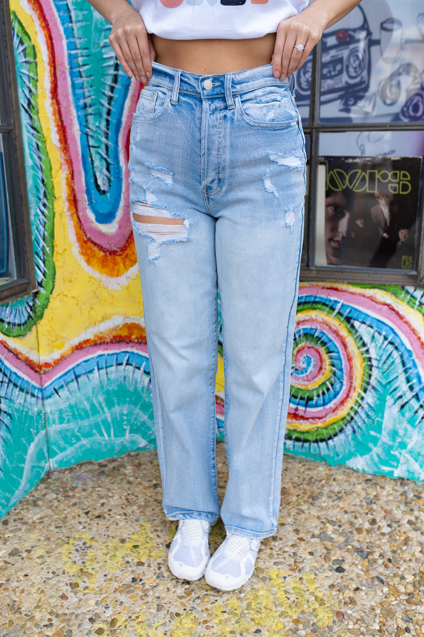 Introducing the Cello jeans featuring a straight pant leg, high waistline, slight baggy fit, and the perfect amount of distress detail.