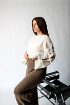 This lightweight sweater features a charming ribbon bow tie detail on the sleeves, adding a playful touch to your ensemble. With its wide sleeves and almost cropped length, this top offers a relaxed yet stylish fit, perfect for layering or wearing solo. Whether you're dressing up for a night out or keeping it casual, the Bow Tied Beauty Top is your go-to choice. Embrace your inner fashionista with this versatile piece that effortlessly transitions from day to night!