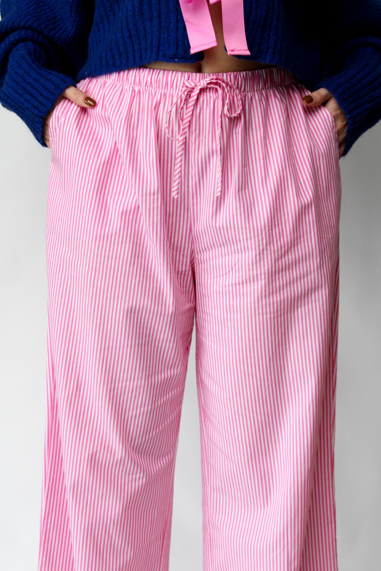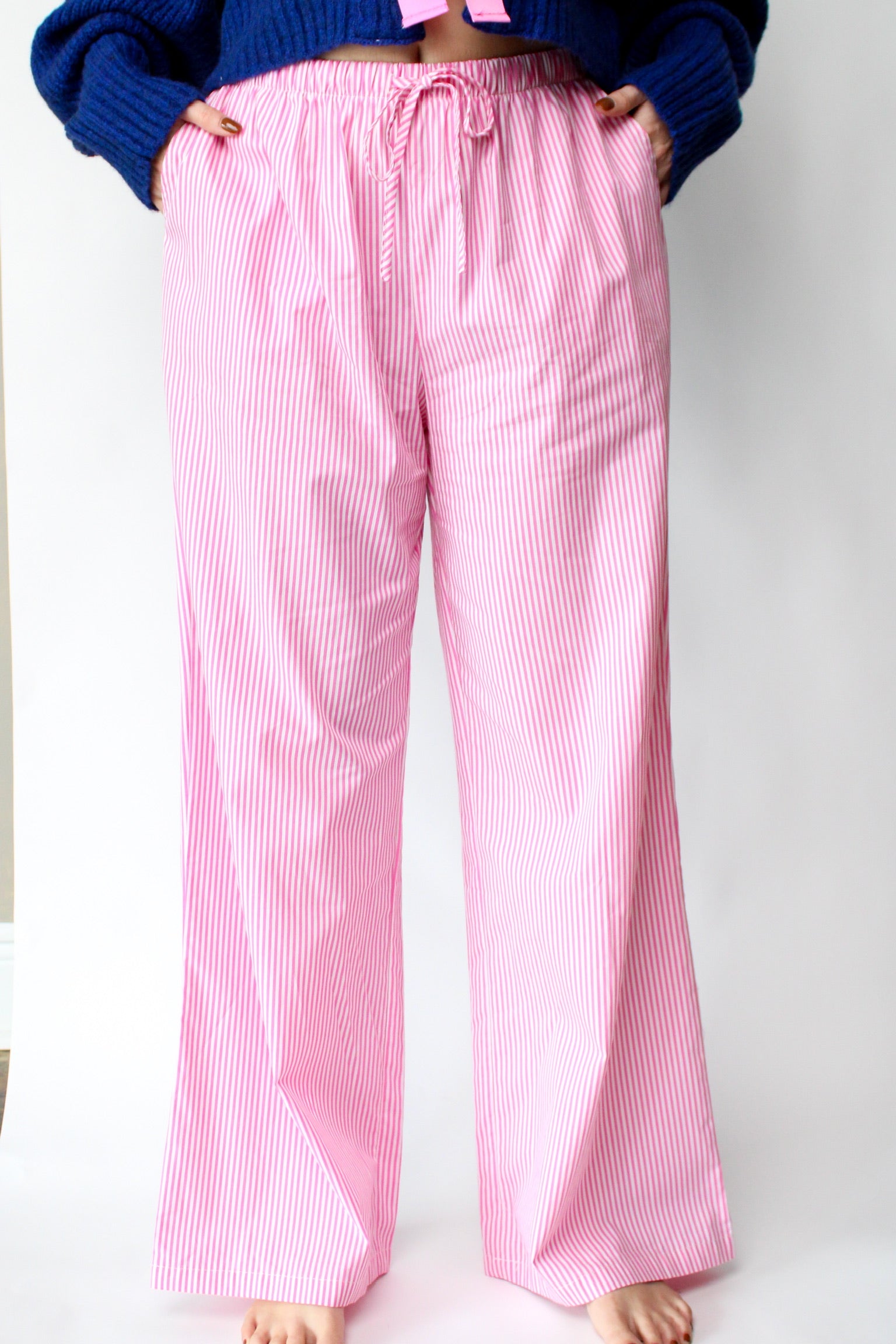 Featuring playful pink and white stripes, our Weekend Wonderers Striped Pants are perfect for your next adventure or a relaxed day at home. The drawstring elastic waistband ensures a customizable fit, while the side pockets add functionality without sacrificing style. Whether you’re lounging, running errands, or enjoying a weekend getaway, these pants will keep you comfortable and ready for anything.