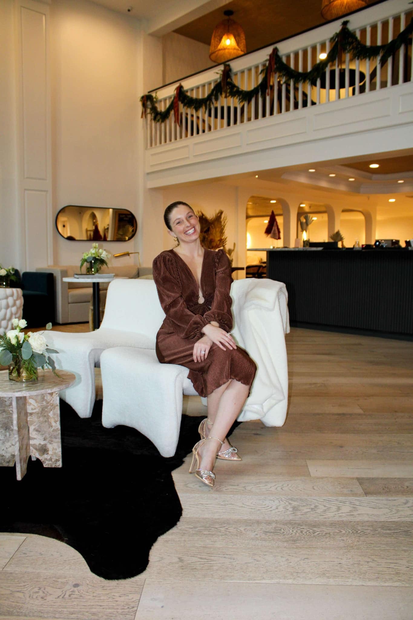 Introducing this chocolate brown midi dress featuring balloon sleeves, a deep v neck with an o-ring trim, side cutouts, lightly lined bust support, a back zipper, and pleated look.