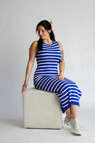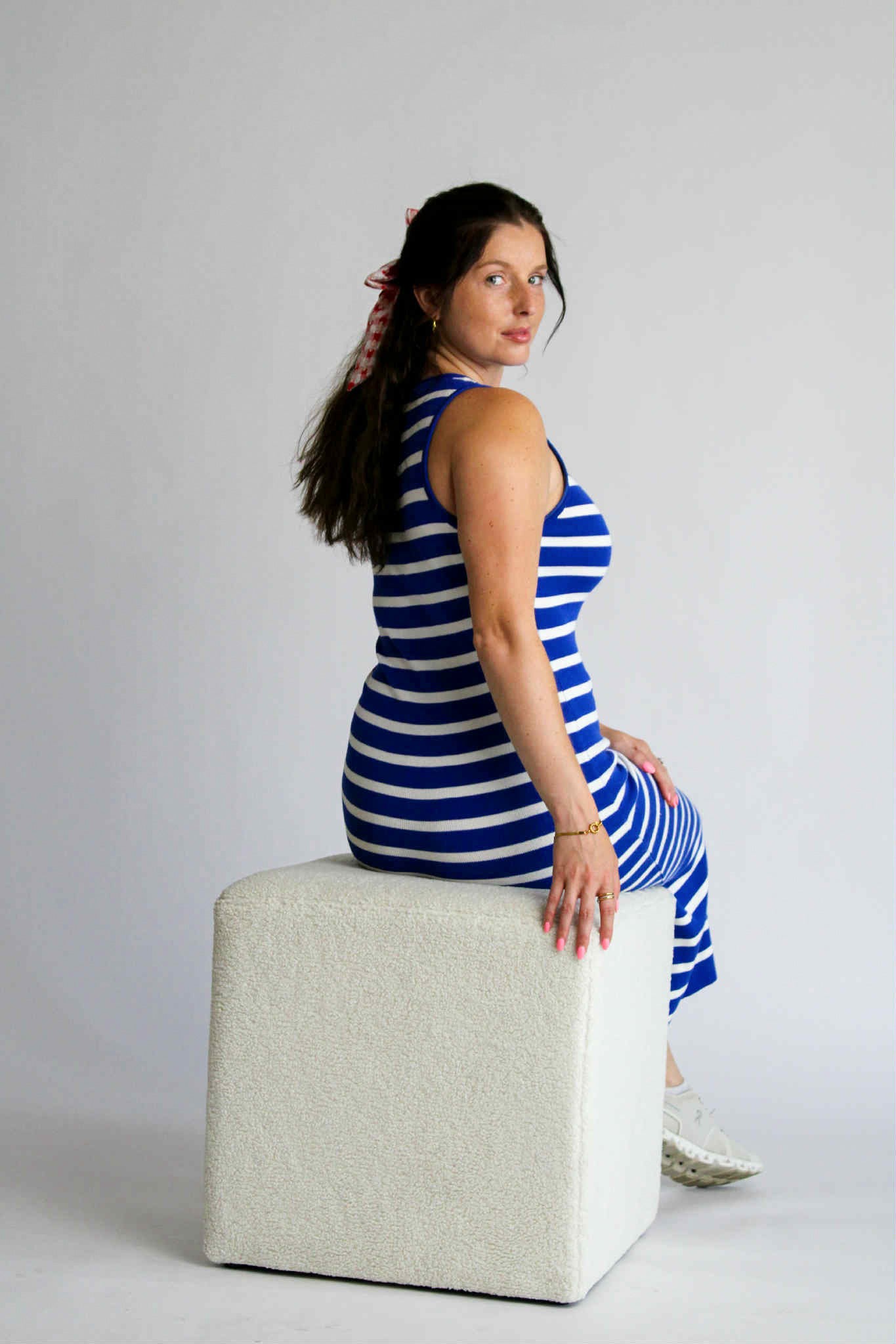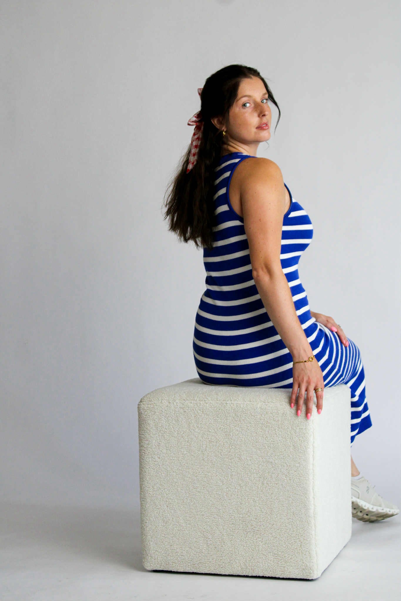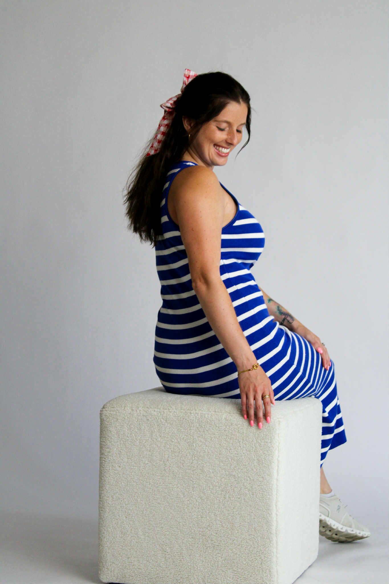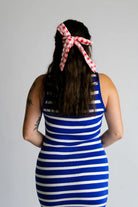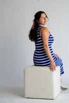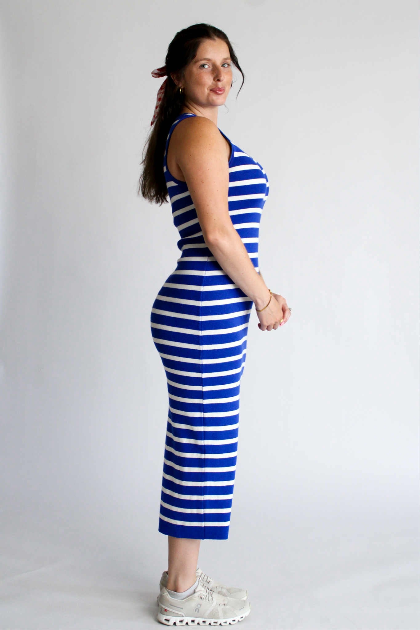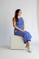 Step into summer with the Coastal Lines Midi, a blue and white striped fitted bodycon midi dress designed for sunny days and star-spangled celebrations. This flattering silhouette can be dressed up with wedges for brunch or styled with tennis shoes or flip flops for a relaxed, casual look. Ideal for Memorial Day, the Fourth of July, or any summer BBQ, this dress brings classic coastal vibes to your warm-weather wardrobe.