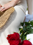 It is paired with a rib brushed cropped cardigan featuring a horseshoe neckline and front button closure.