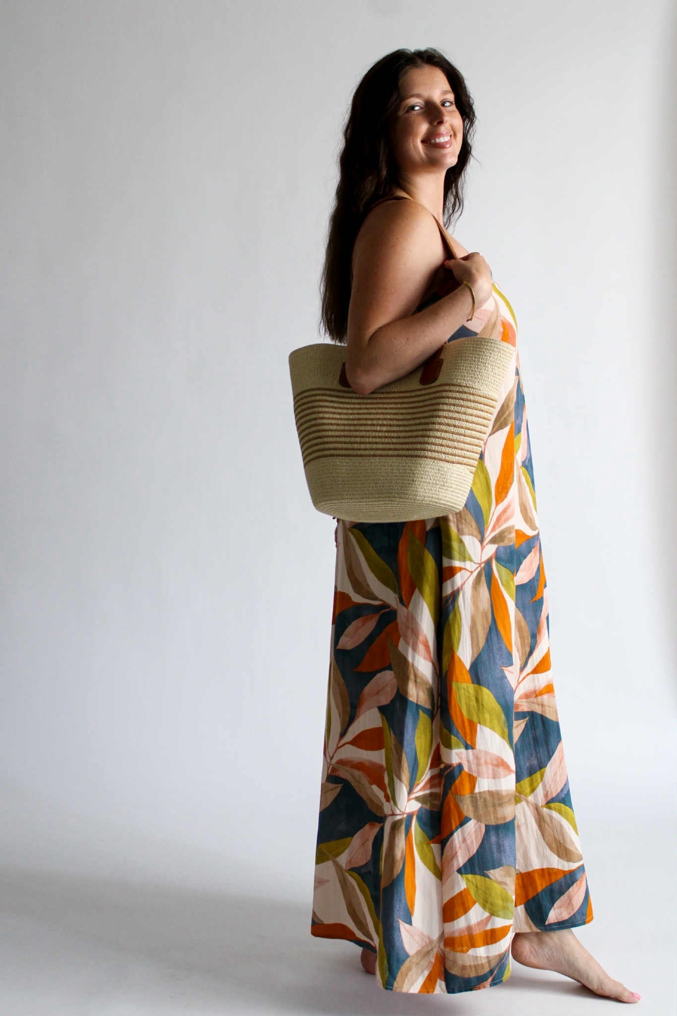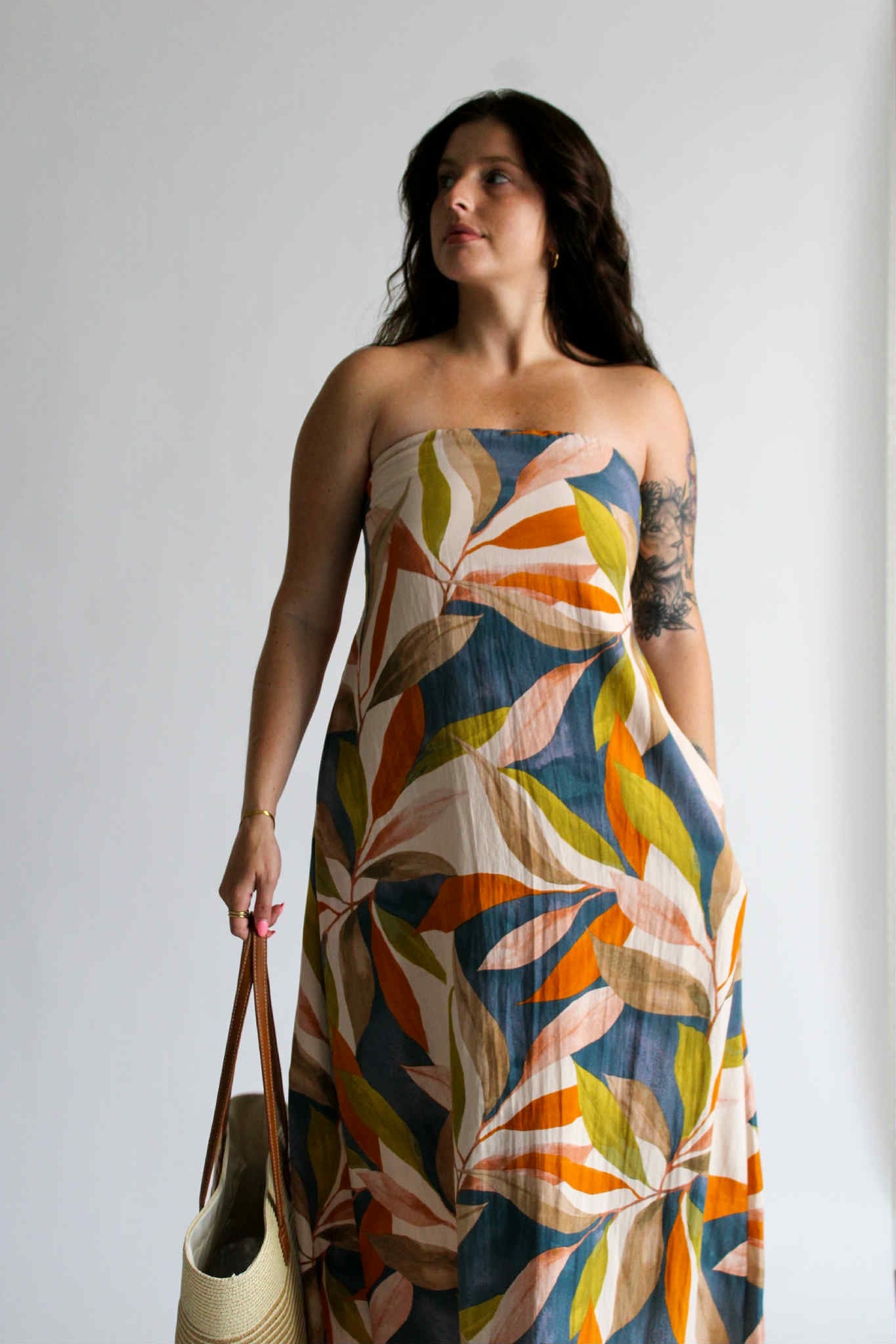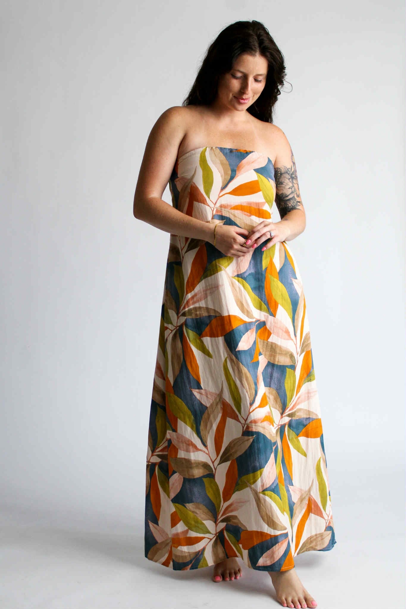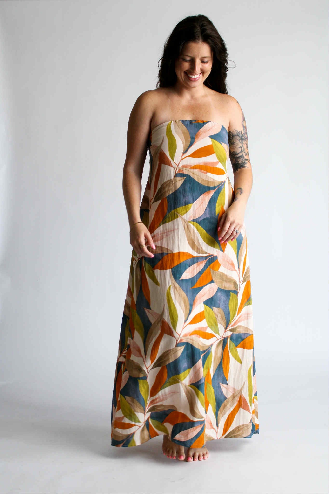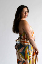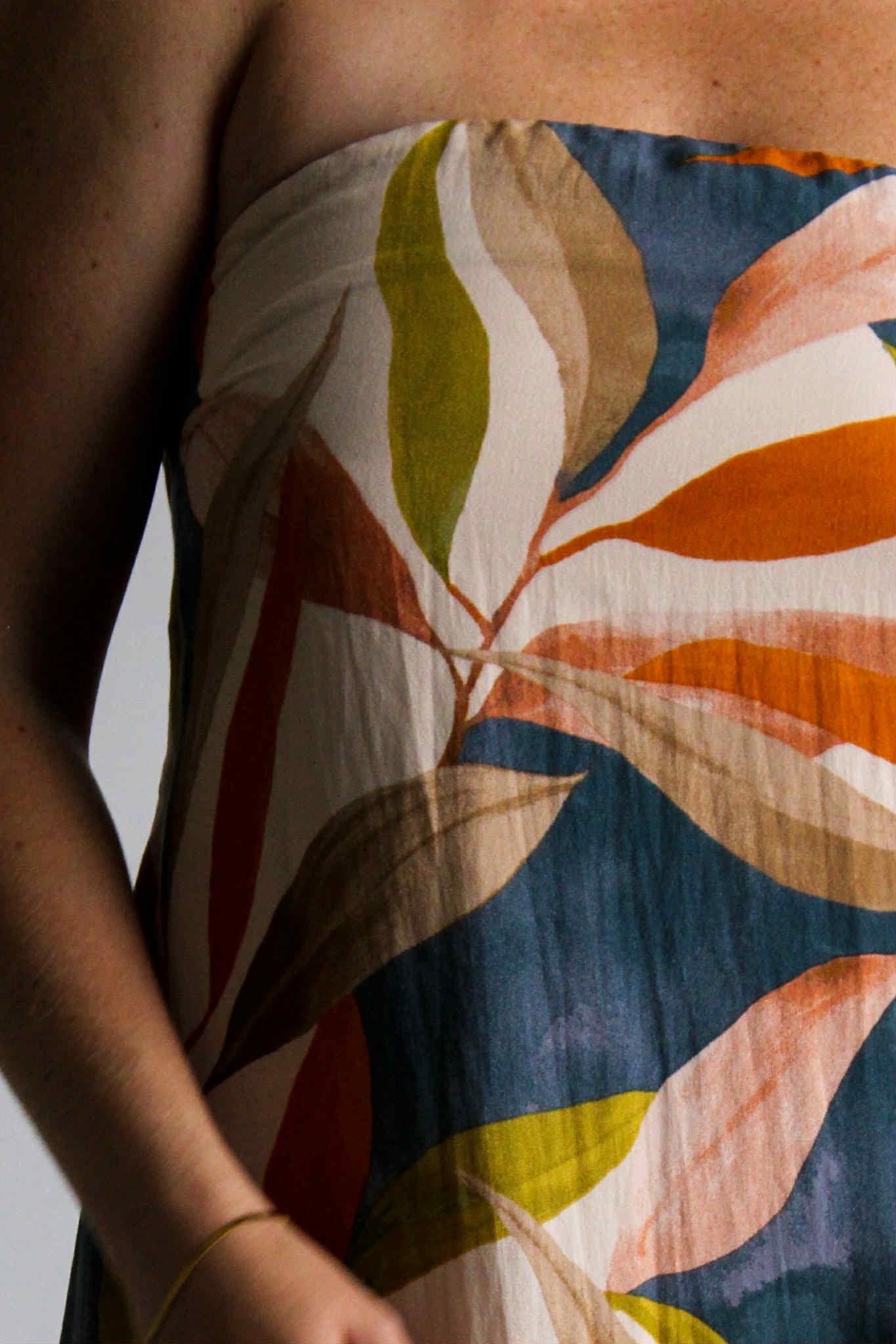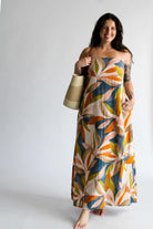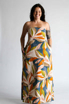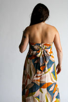 Step into the magic of golden hour with our Golden Hour Midi in Persimmon Blue. This strapless midi-length dress is designed for comfort and style, featuring an elastic band for a secure fit and extra fabric at the back that ties into a charming bow. Hidden functional side pockets and the multicolored pattern adds a vibrant, sunset-ready touch. Whether you're headed to a summer soirée or a sunset stroll, this dress is your golden hour essential.