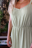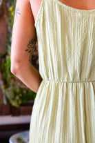 Introducing this fun strapped tiered maxi featuring working side pockets, adjustable cami straps, pleated plisse woven fabrication, and a tiered bottom.