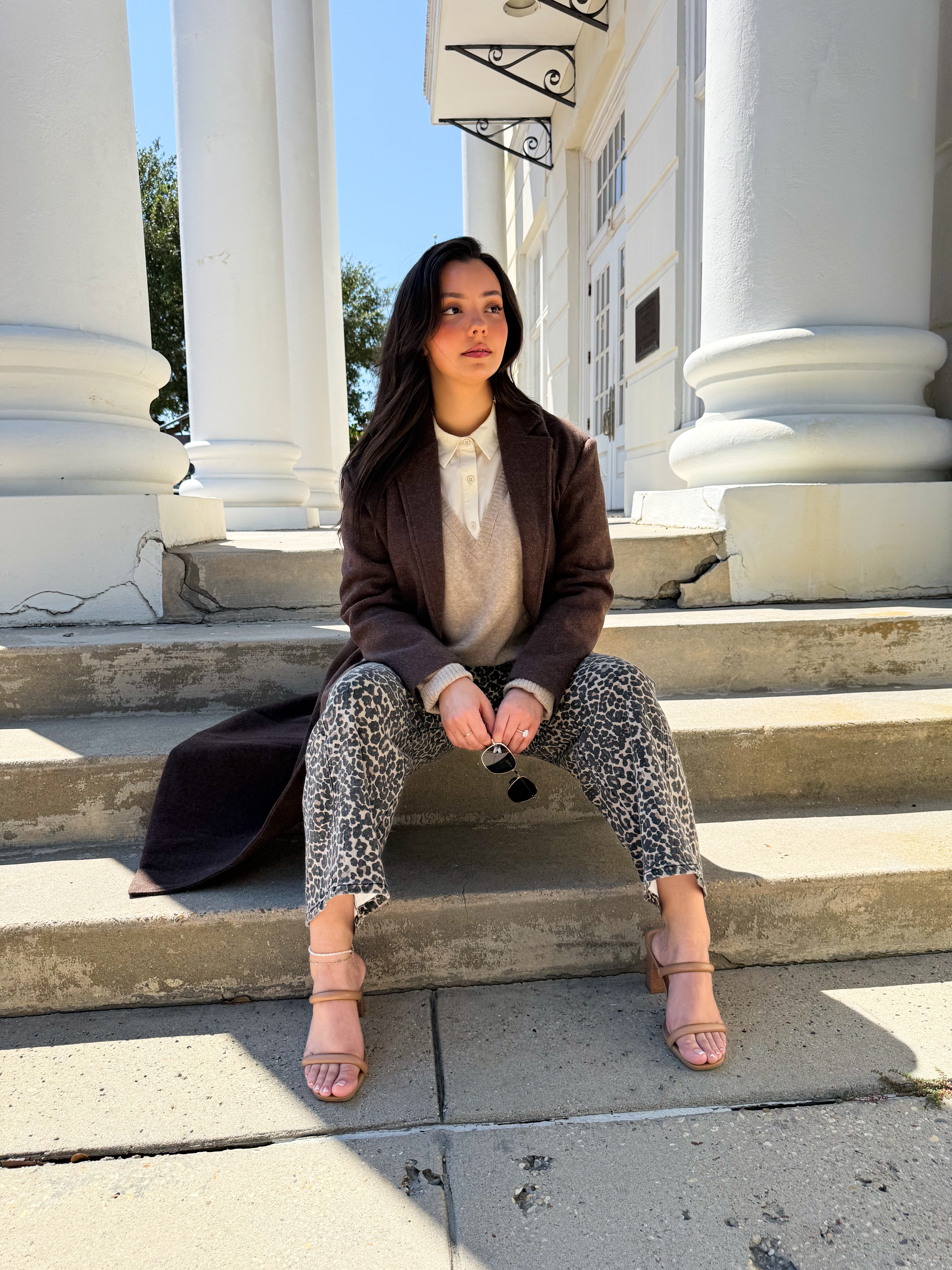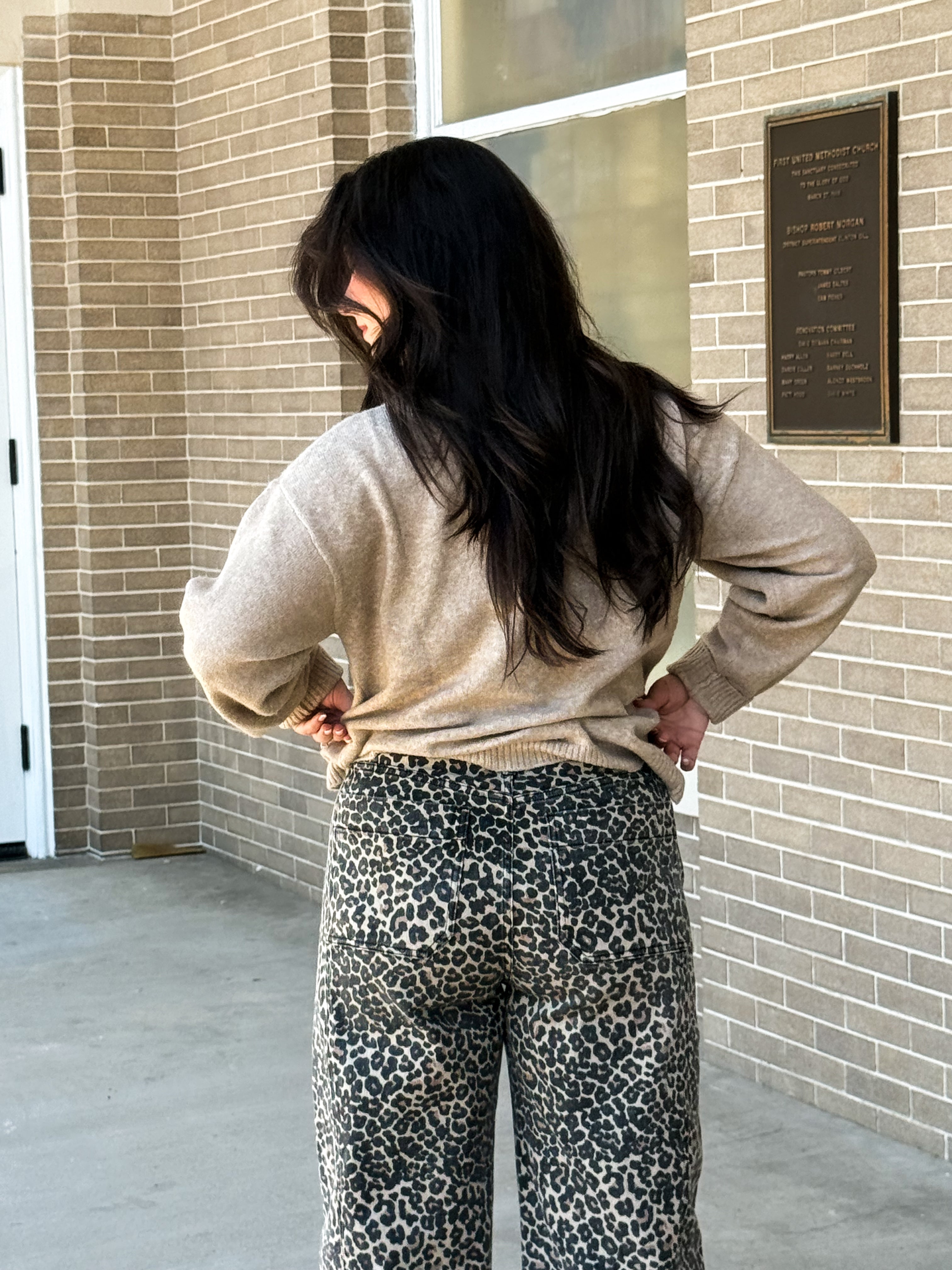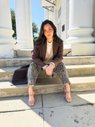 From the lecture hall or office desk to cocktails after dark — the Balance Leopard Print Barrel Pants are made to keep up with your day. Featuring a relaxed barrel-leg silhouette, mid-rise fit, and ankle-length cut, they strike the perfect mix of polish and personality. The bold leopard print adds a confident edge, while the tailored button closure and structured drape make them easy to dress up or down. Pair with a collared shirt or blazer for work or a crop top and heels for your night out.