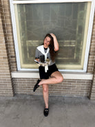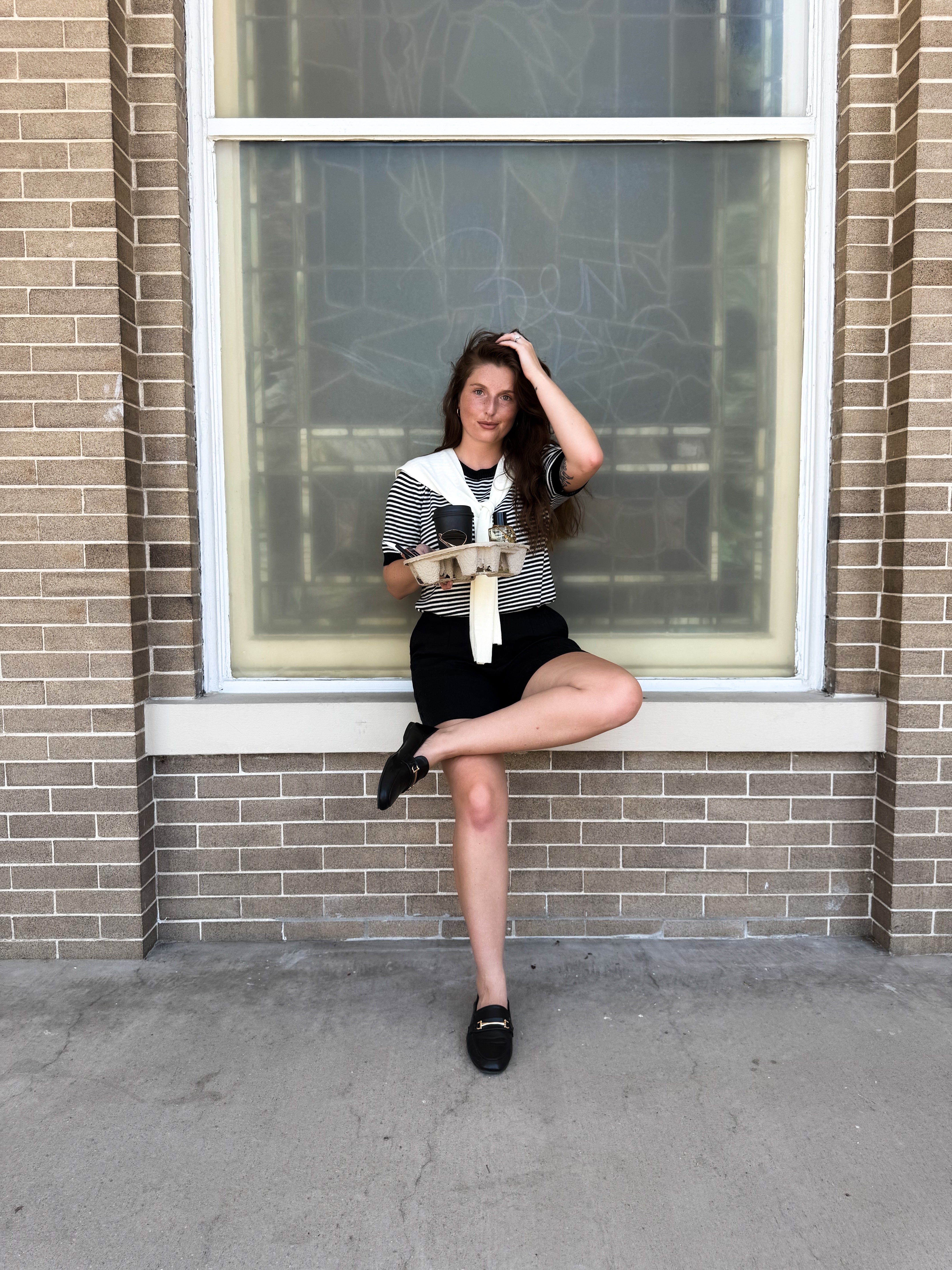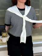 If Wednesday Addams had a sister who studied fashion in Paris, she’d wear this. Our Black & White Stripe Knit Top blends moody elegance with effortless French flair. Featuring a timeless high-contrast stripe and a sleek silhouette, this top is elevated by a detachable shawl wrap that adds instant drama, warmth, and versatility.