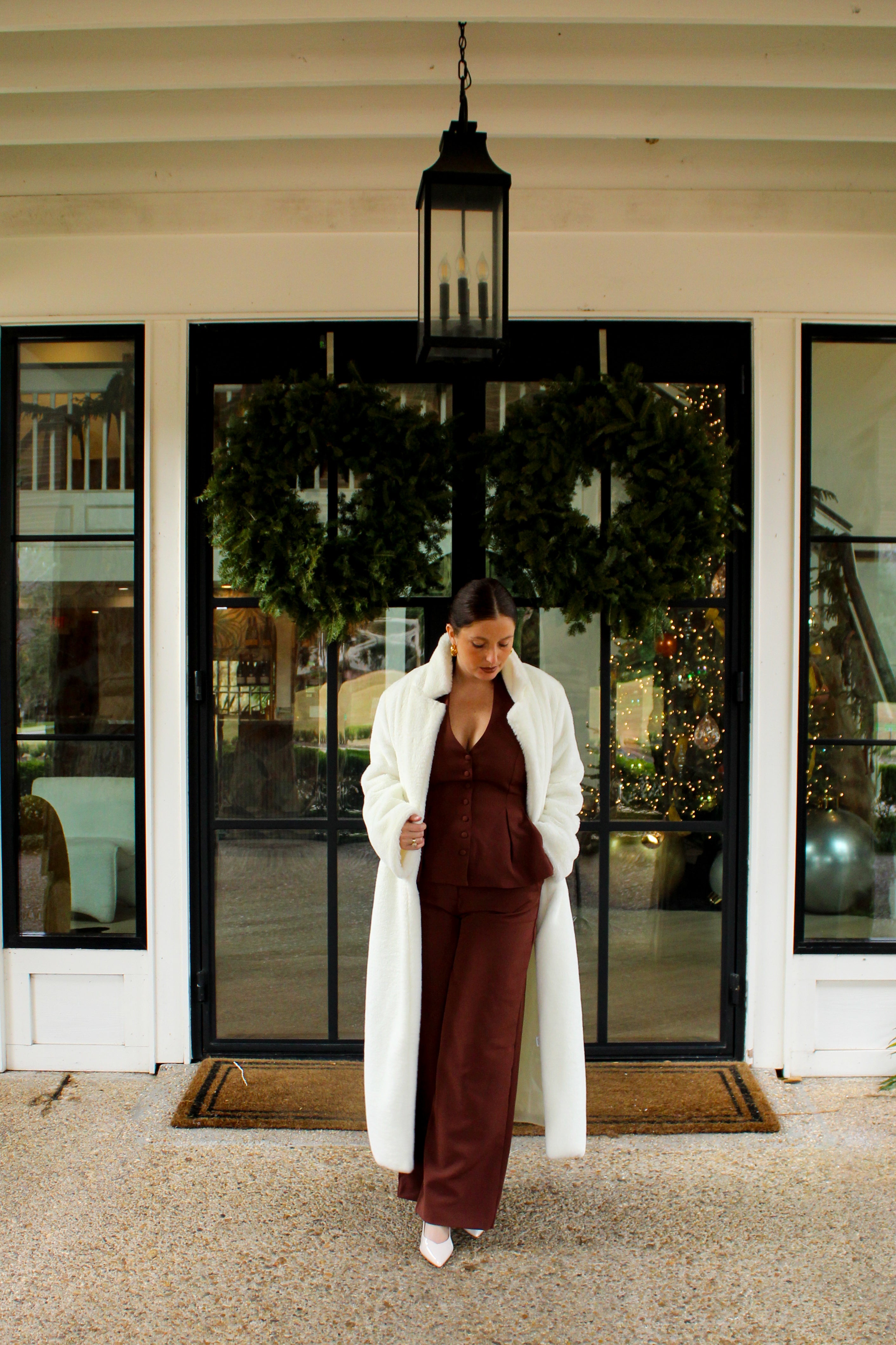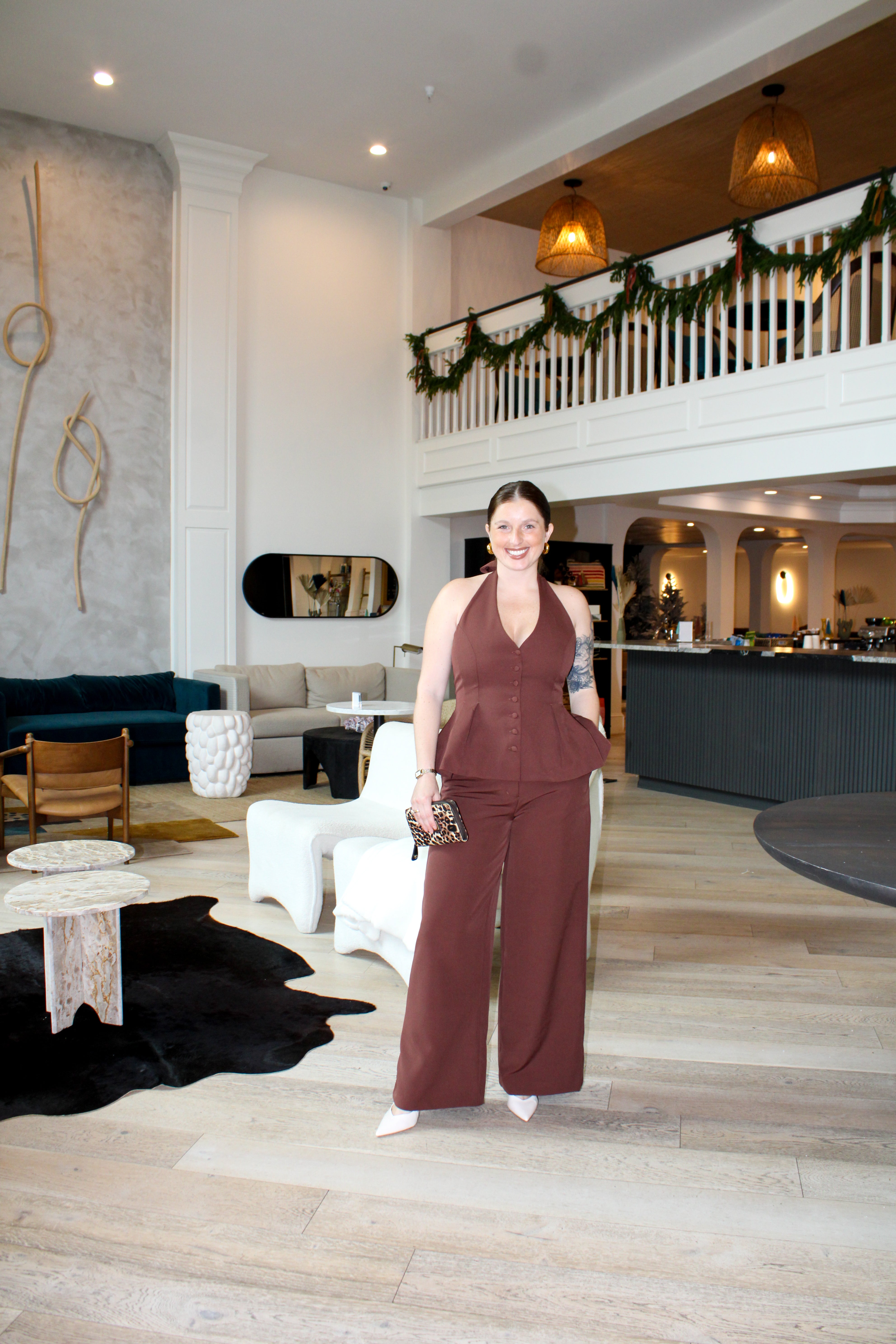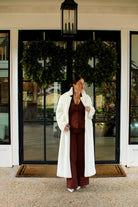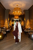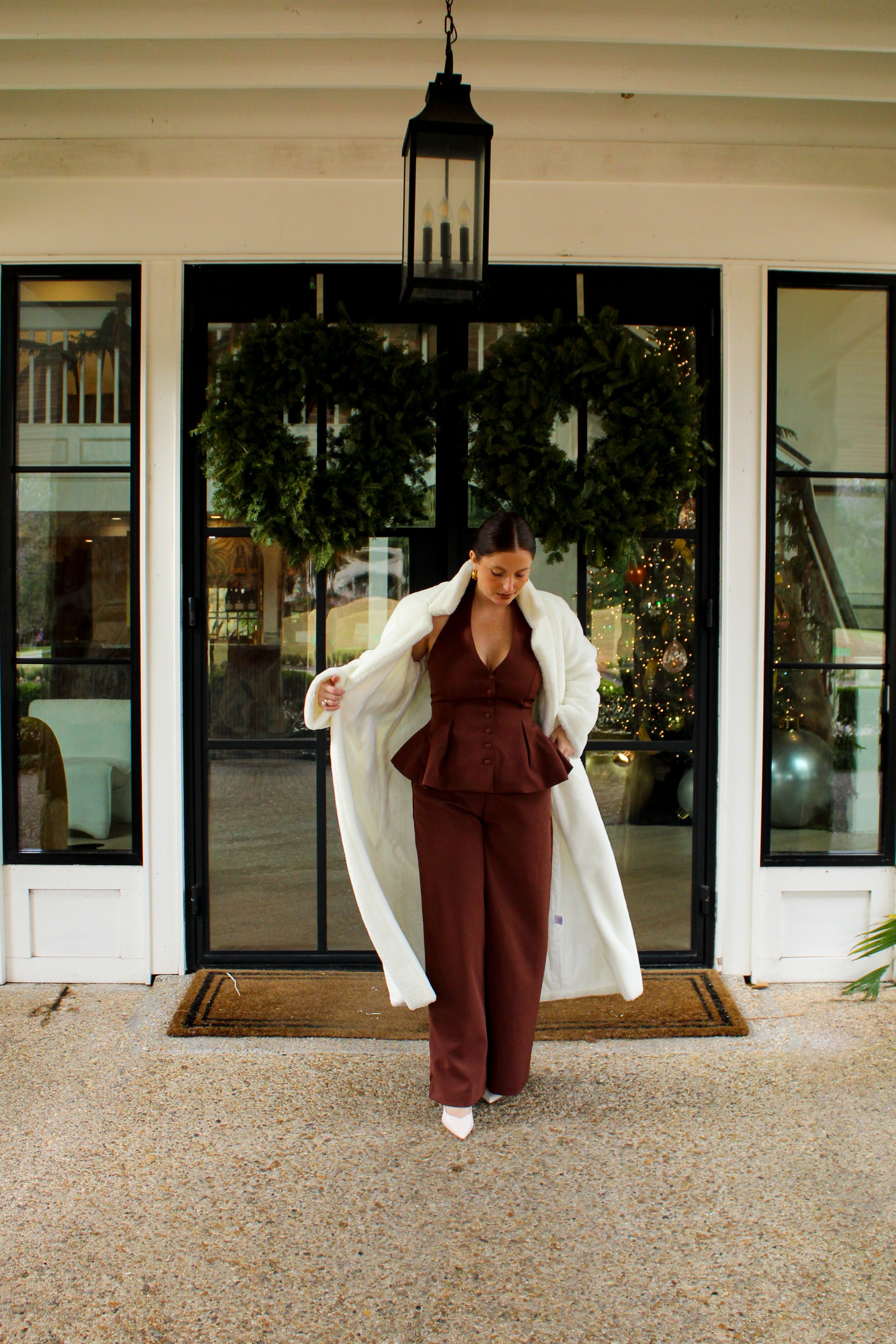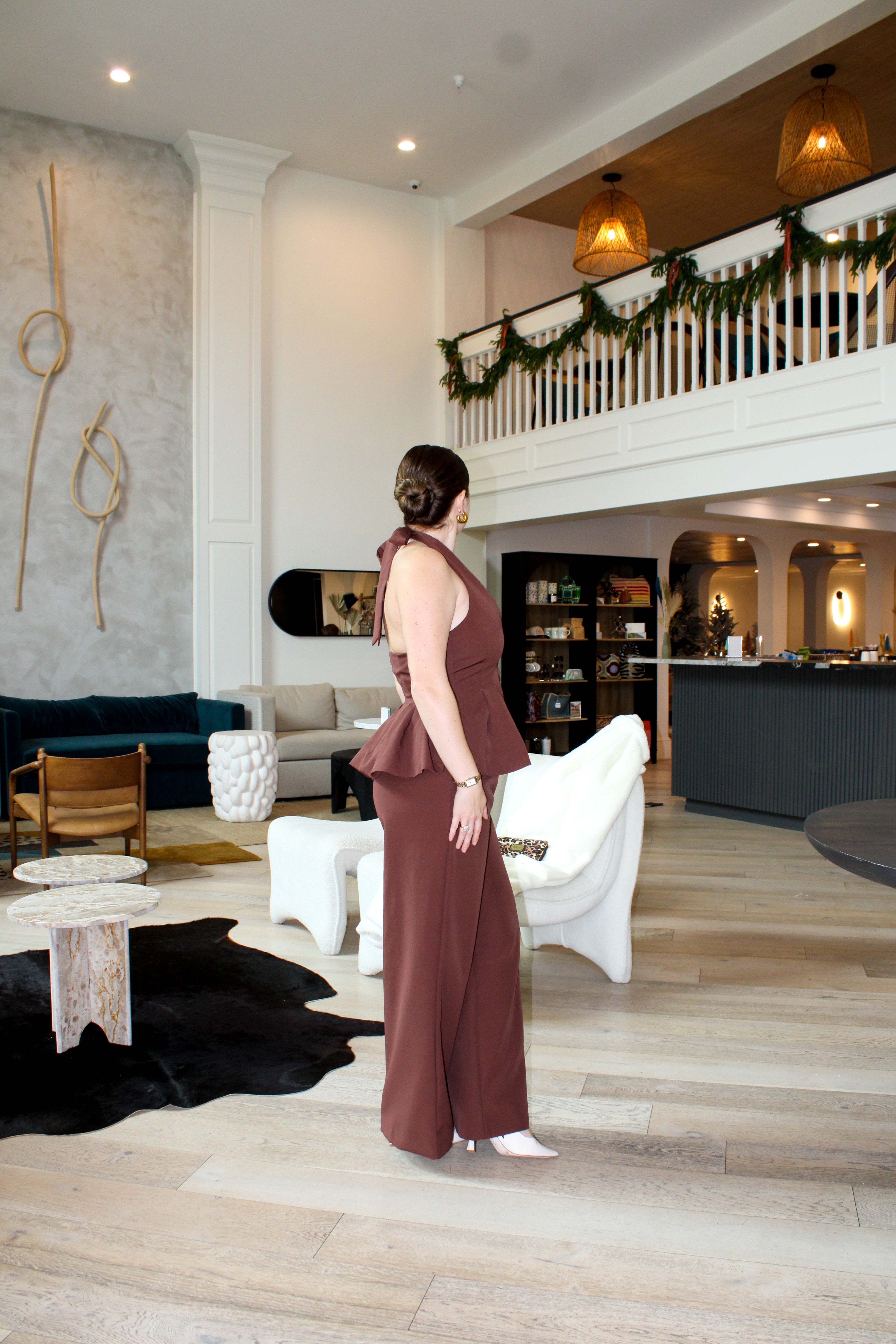 For the woman who means business—but on her own stylish terms. The Cocoa Couture Executive Set pairs a statement halter-neck peplum top with matching chocolate pants, creating a look that’s sharp, feminine, and undeniably eye-catching.