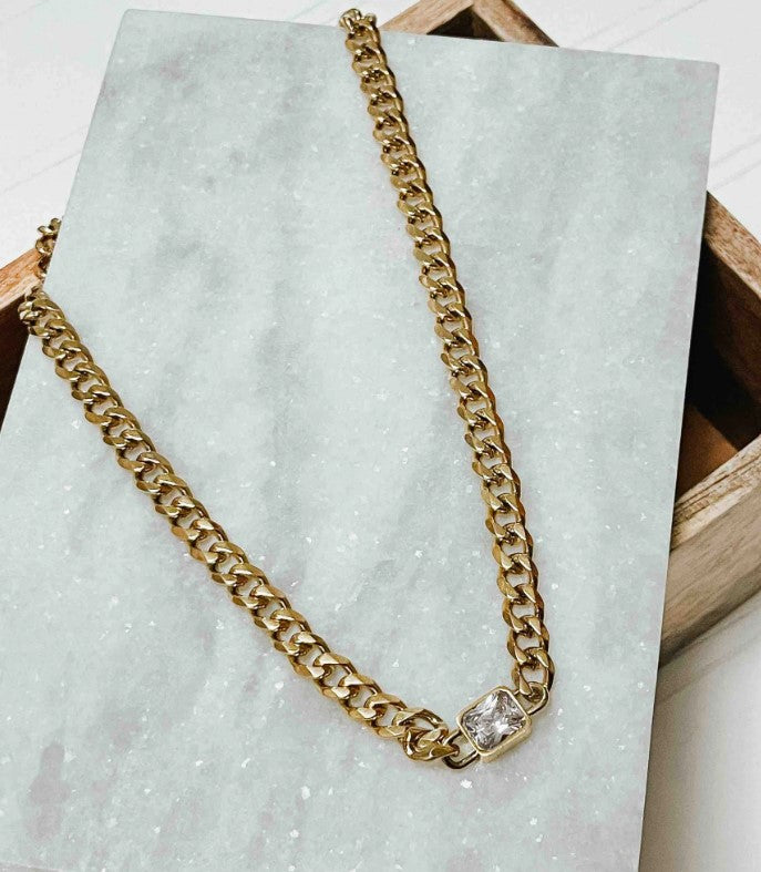 This Cuban gold chain necklace with clear zircon is one you can wear everyday with any style outfit, and can also be worn as a layering piece.