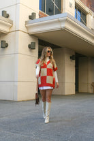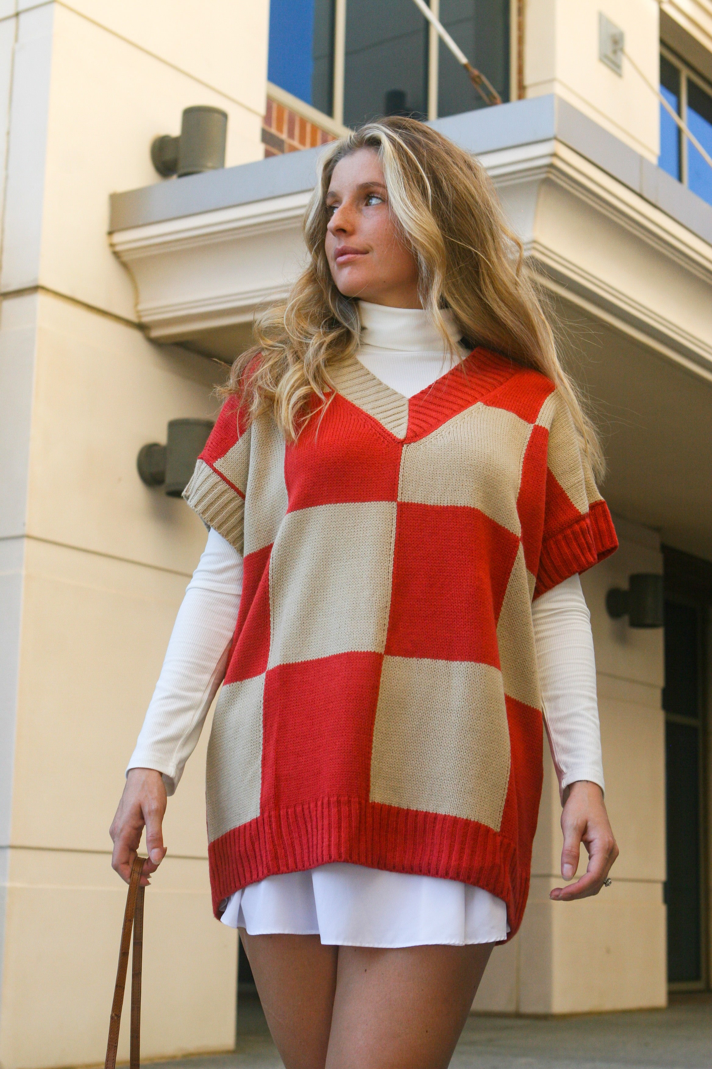 Casual sweater vest featuring a v-neck and checkered pattern.