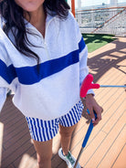Introducing our Two Toned Trend Jacket in a stylish grey and blue colorway. Featuring a working collar and a functional zipper, this jacket combines practicality with a modern design. The bold blue horizontal stripe adds a fresh touch, making it ideal for casual outings or outdoor activities. Made from high-quality materials, this jacket is designed for both comfort and durability.