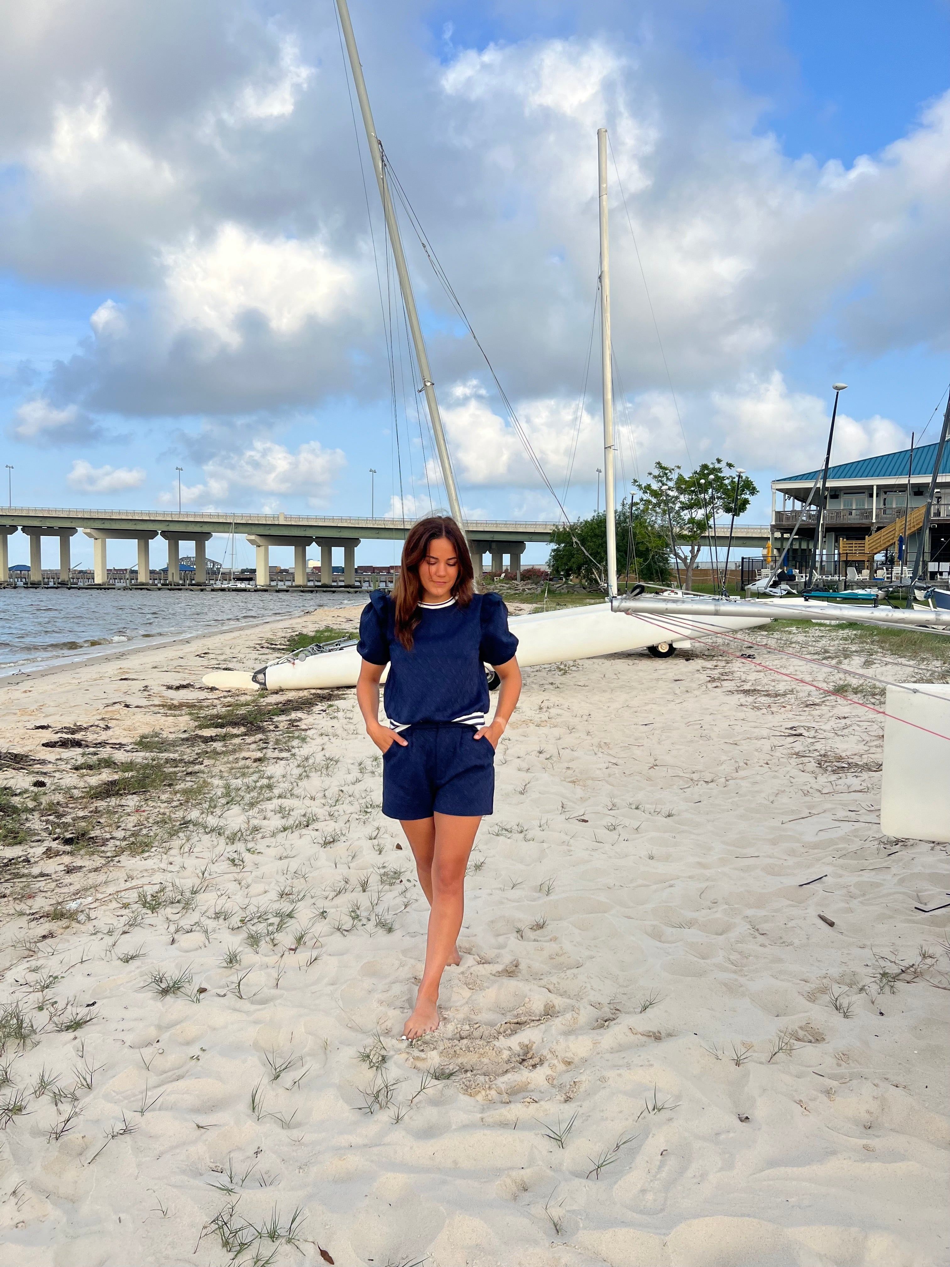 Introducing our Navy Sailor Bottoms, designed for the modern woman who values both style and functionality. Featuring a single button closure for easy wear, these bottoms boast working front pockets for added convenience. The back pockets ruffle and lower waist lining detail adds a playful yet sophisticated element to the design, elevating your look with subtle charm. Mix and match with the top for endless outfit possibilities, whether you're stepping out for a Fourth of July BBQ with friends or attending brunch with the girls.