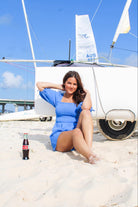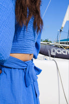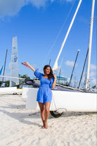 Introducing our A Crinkled Romper. A must have restock we're loving for the summer! Featuring a square neckline, tie back, side pockets, cotton crinkle gauze fabrication, and a beautiful ocean blue color.