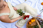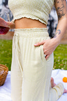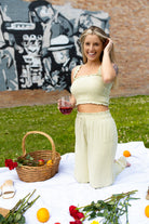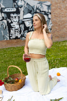 Introducing your next summer set featuring a sleeveless, smock crop top with frilled straps, and a square neck.