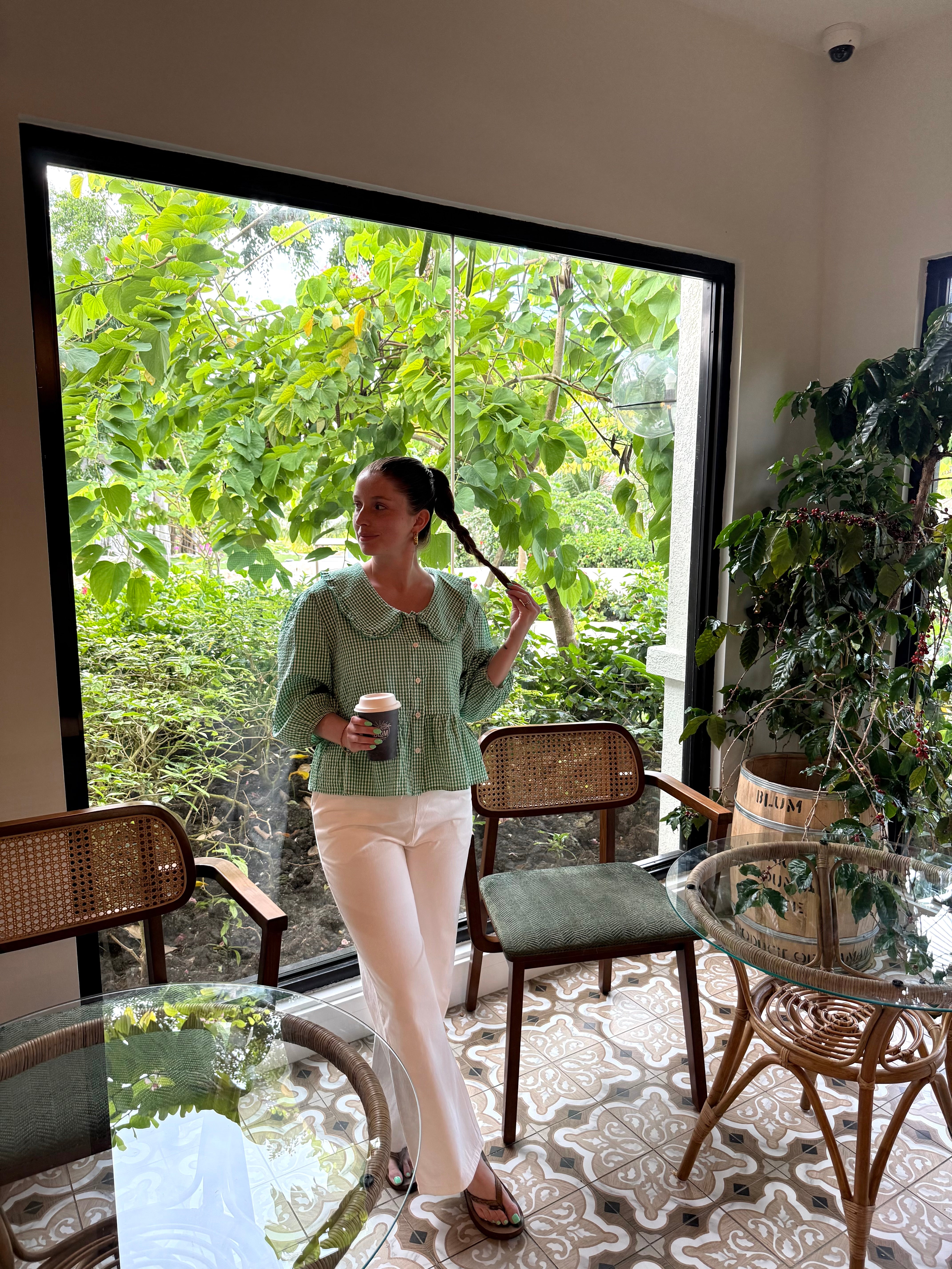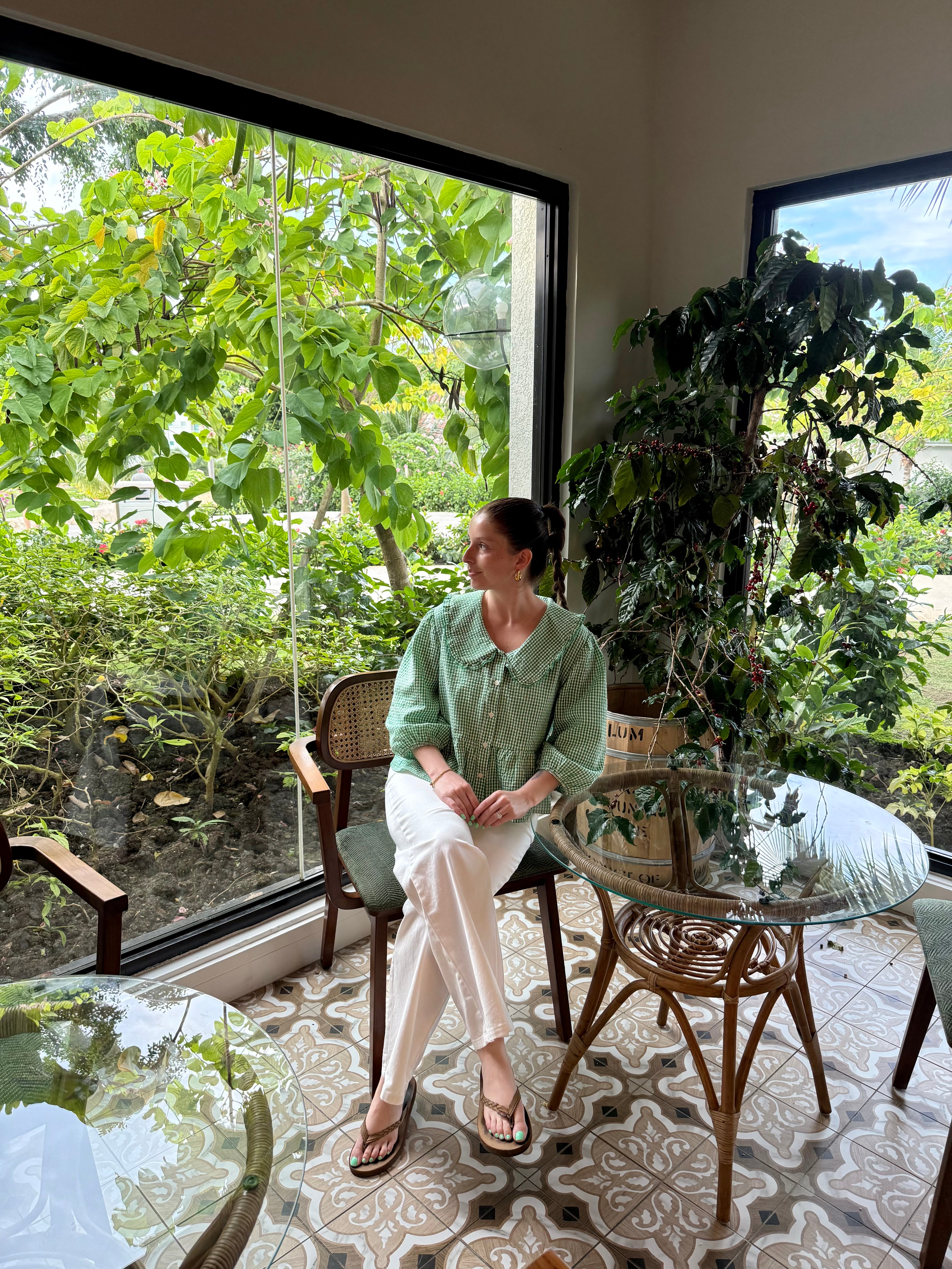 Introducing our Green & White Bib-Collar Poplin Blouse