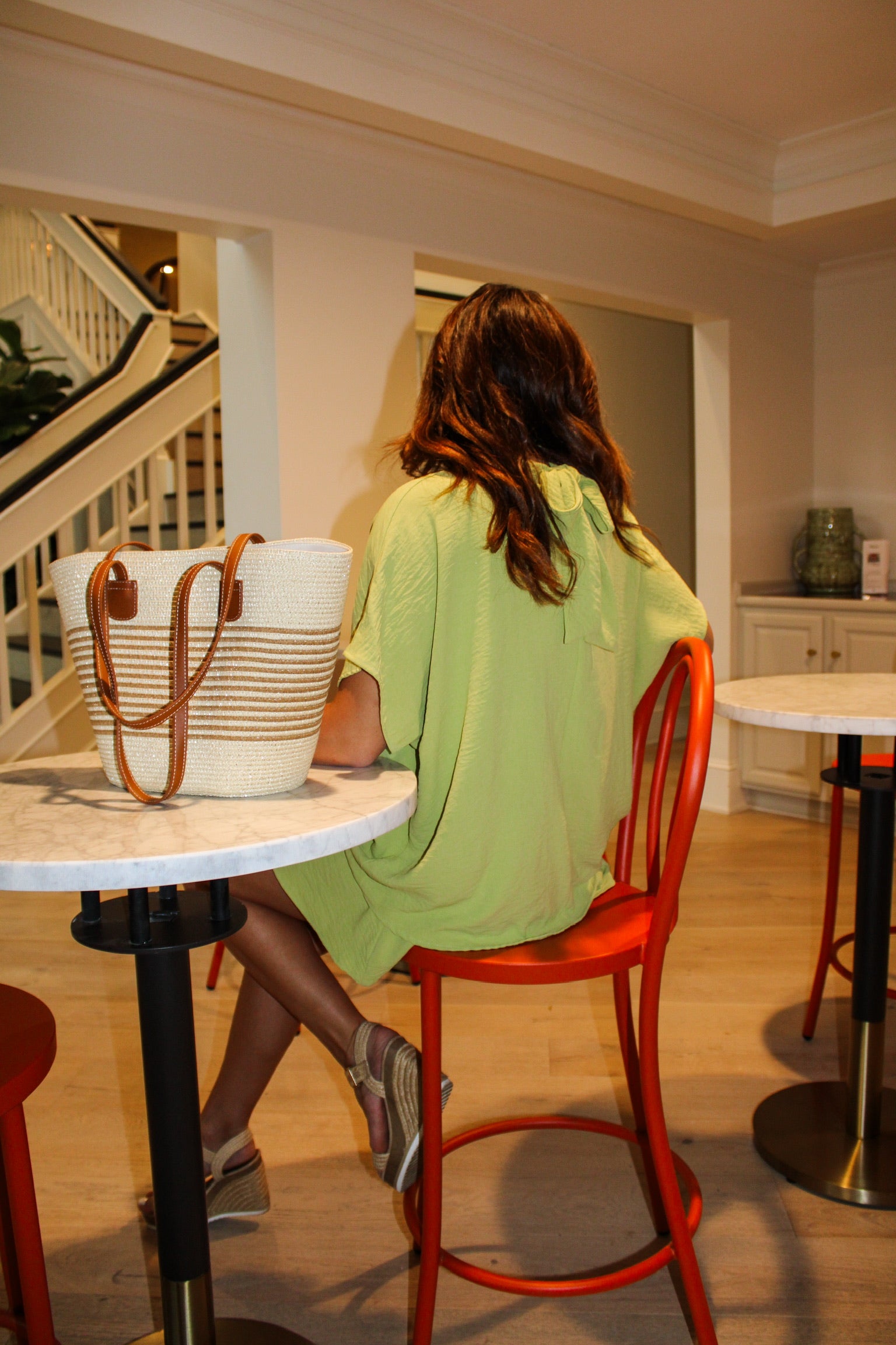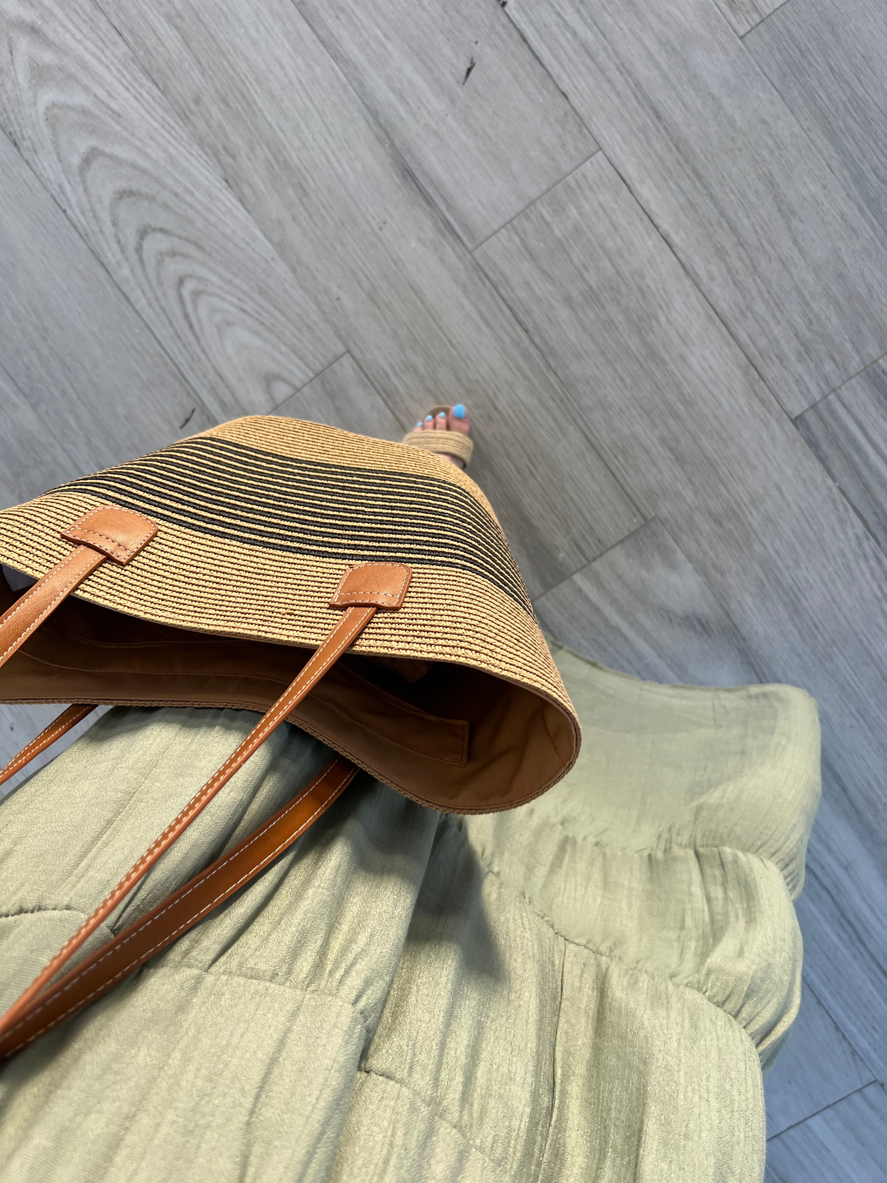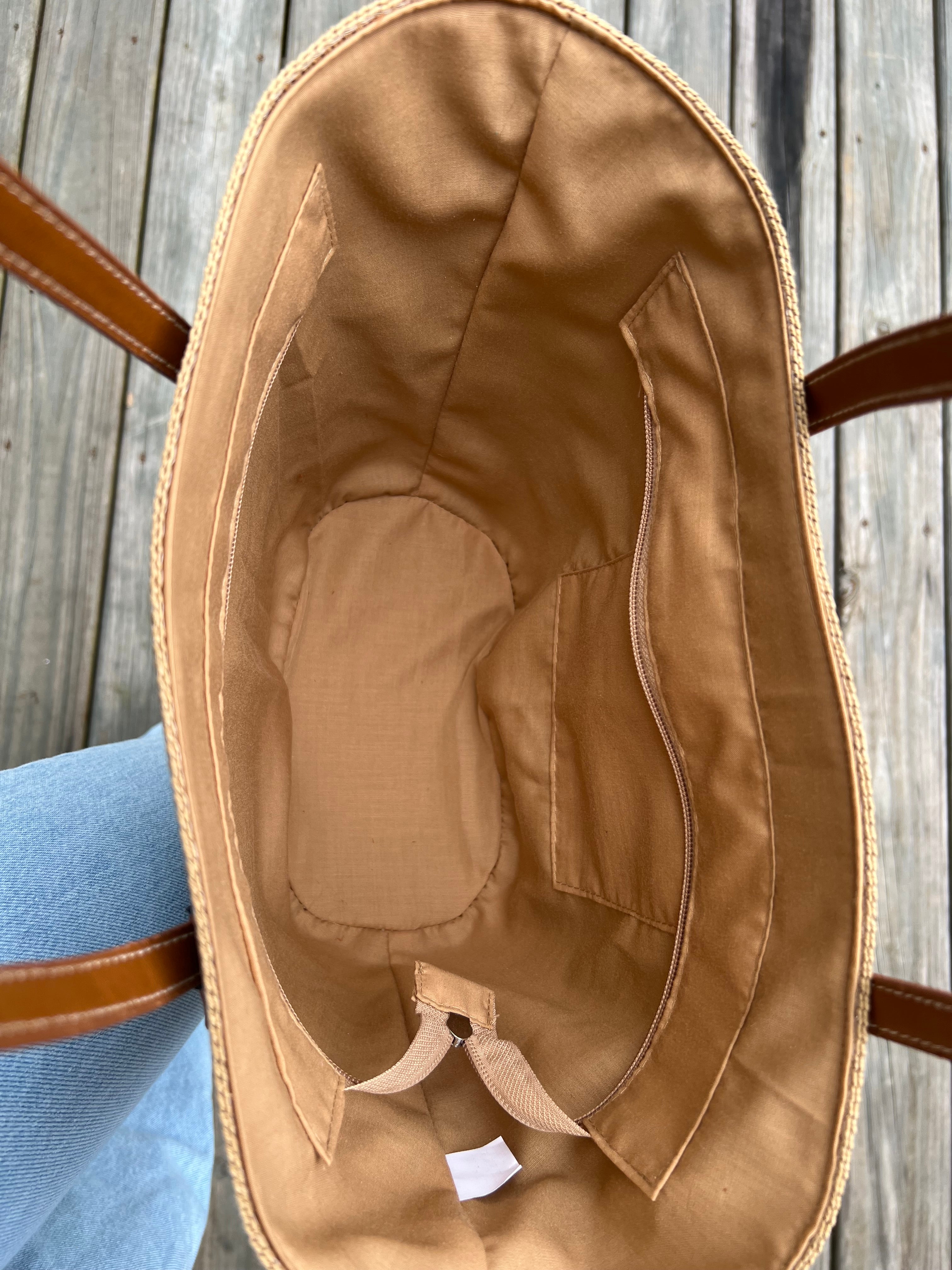 It features a zipper closure, an interior pocket, and it has a beautiful a tan interior fabric lining. This bag is lightweight with sturdy and durable handles, and is able to hold a lot of your necessities!