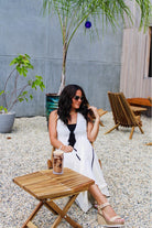 Introducing our Main Character Maxi Dress, where the spotlight is calling your name. This dreamy maxi features a daring plunging neckline adorned with intricate binding details and a separate cropped black bralette.