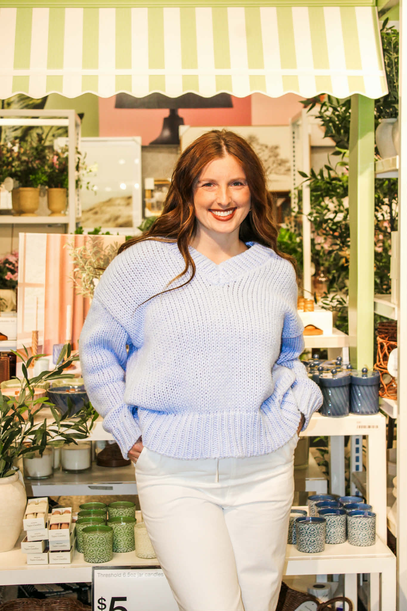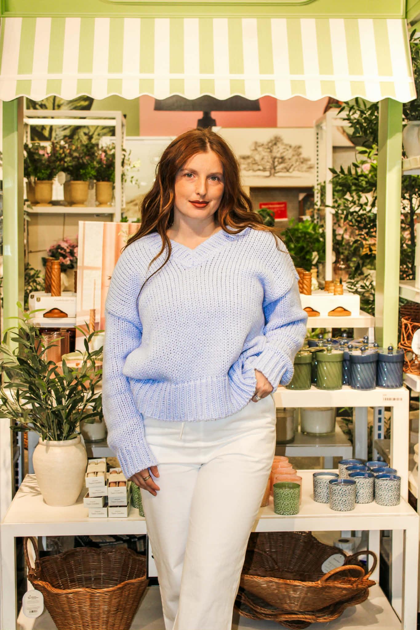 Light Blue V-Neck Knit Sweater