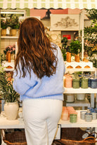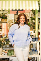The Light Blue V-Neck Knit Sweater. Designed in a soft, lightweight knit, this sweater features elegant balloon sleeves that add a touch of volume and femininity while the flattering V-neckline keeps the look effortless and versatile. The soft light blue color adds a fresh, airy touch—perfect for welcoming the spring season.