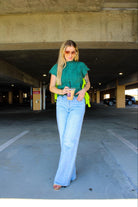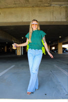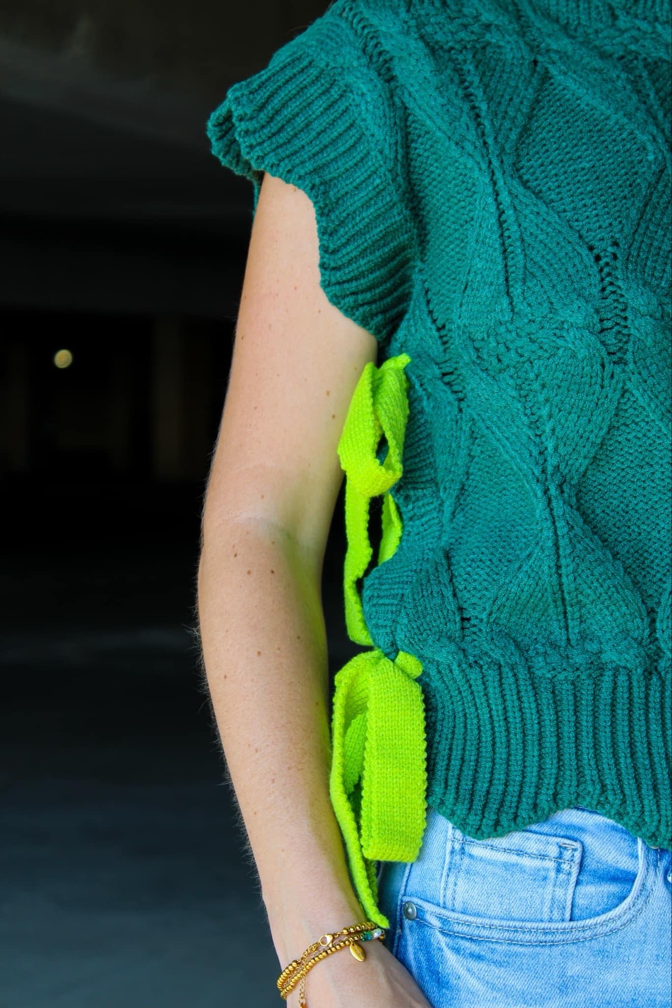 Introducing the "Side-Tie Cable Knit Sweater." Featuring a a bold statement in knitwear. This distinctive sweater features a rich hunter green hue paired with a striking contrast tie cable knit. Designed with a playful cut on the sleeves and bottom hemline, it combines modern flair with classic charm. The high neckline adds a touch of sophistication, making it a versatile piece for any wardrobe. Embrace both style and comfort with this unique and eye-catching sweater.
