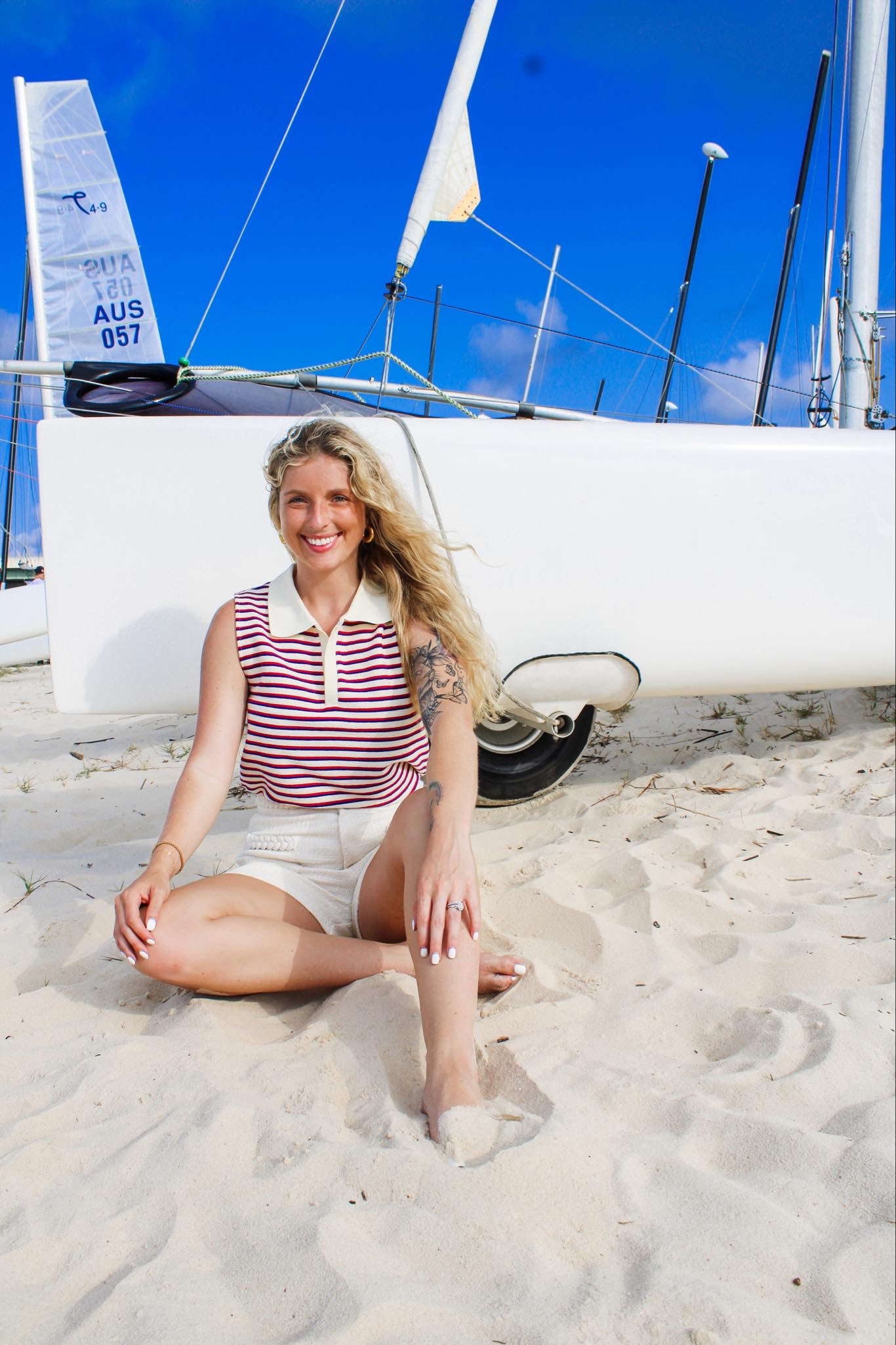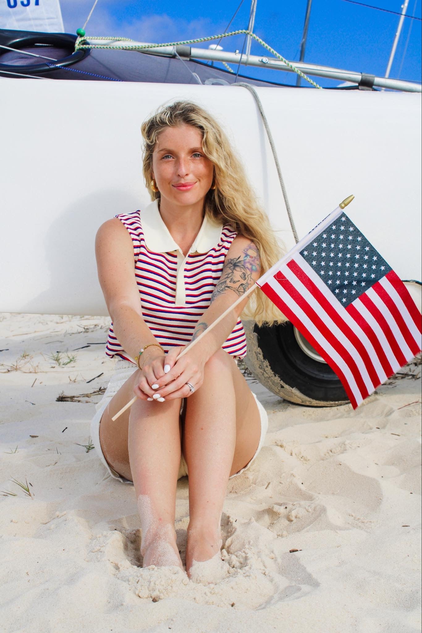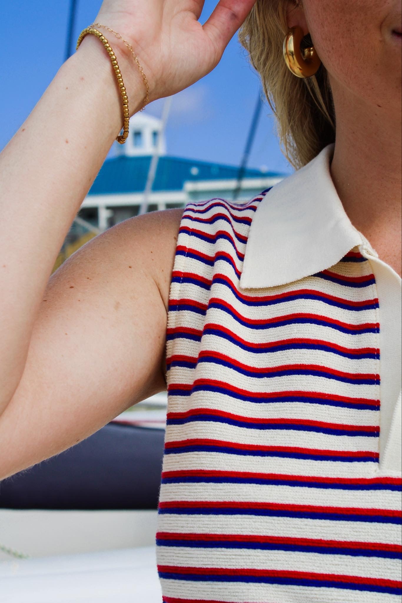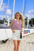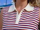 Featuring a classic collar, this tank offers a sophisticated touch to your ensemble, perfect for both casual outings and more formal occasions. The red, white, and blue stripes evoke a sense of patriotism, making it an ideal choice for any patriotic celebration or event.