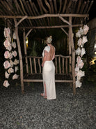 This maxi features a low back, maxi length ,side slit, and soft feel. You can add sandals for a casual, relaxed look, or add a pair of platform woven slide sandals for an easy beachy vacay-ready look.