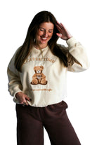Start your day cozy and caffeinated with the Coffee Time Graphic Sweatshirt. Featuring a cute bear graphic and the phrase “Wake up and smell the coffee”, this sweatshirt adds a playful touch to your everyday look. Soft, warm, and easy to style — perfect for coffee runs or lounging at home.